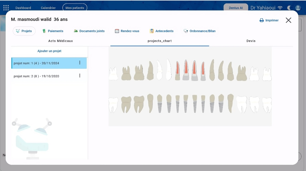 Integrate Dental Chart into Dentus software, this chart gives an image of the patient's mouth, making it easier for the doctor to remember the dental actions in his patient.